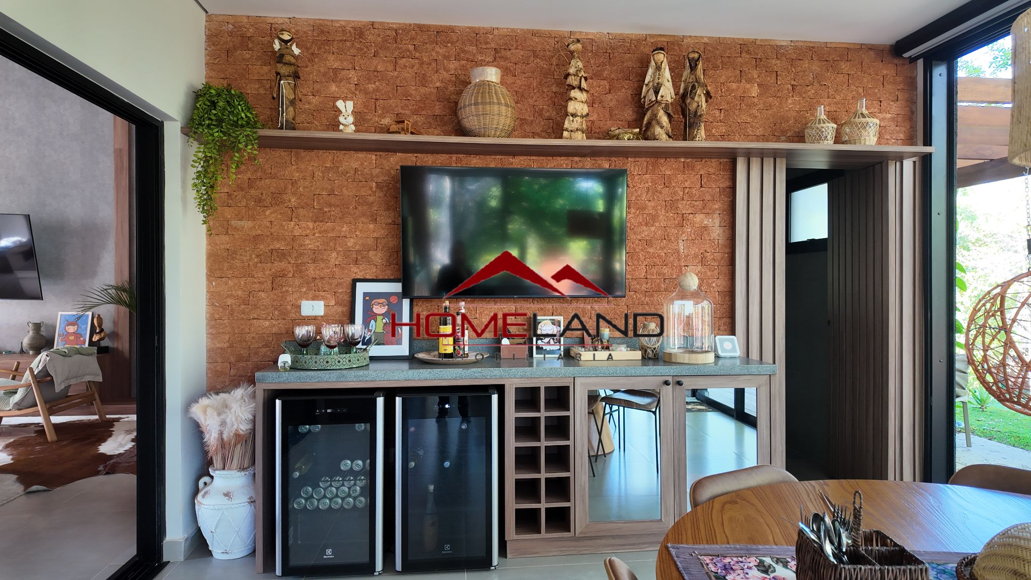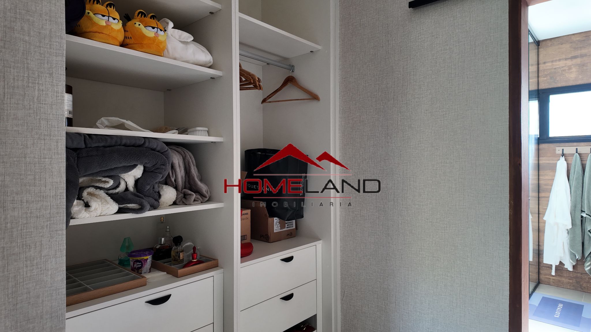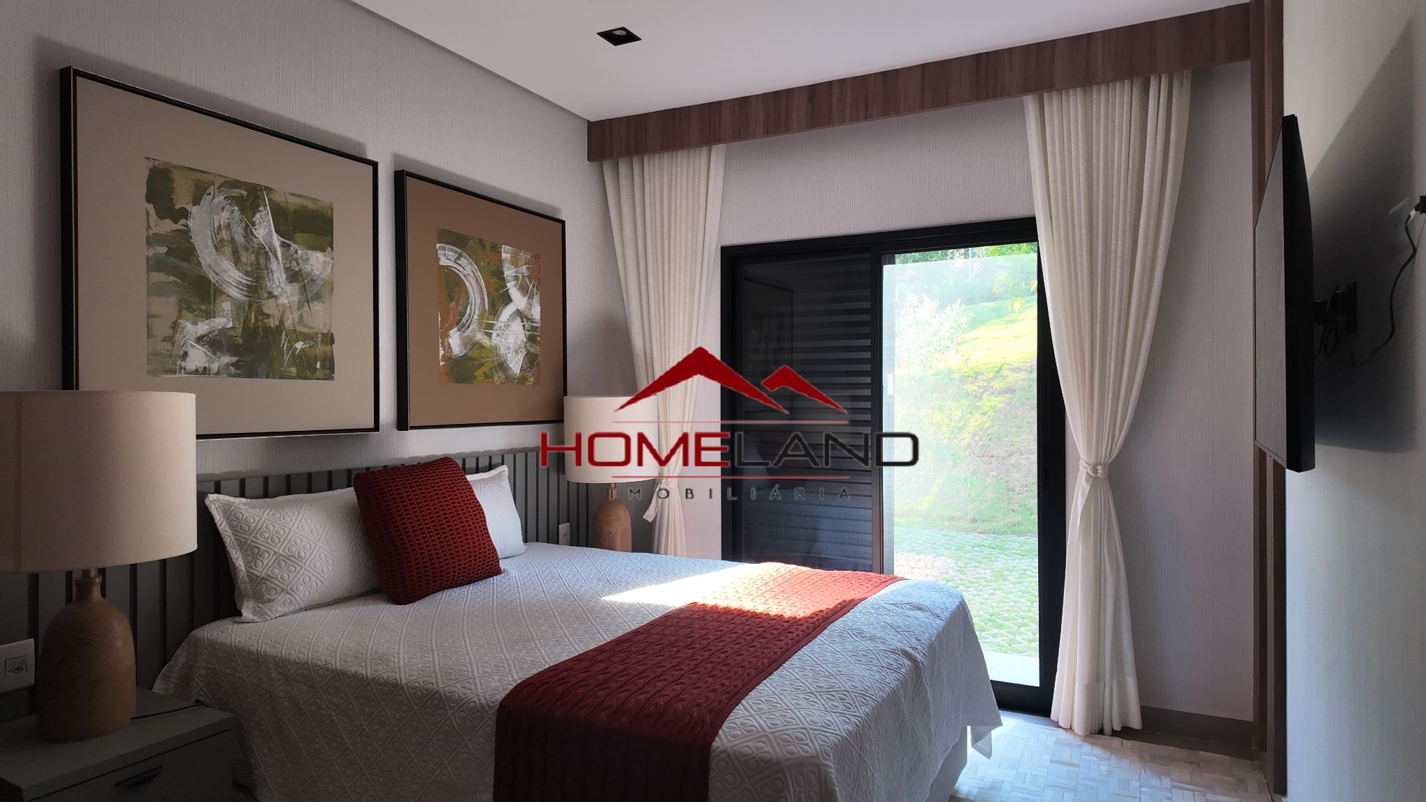 Uma suíte e 2 quartos. Cozinha integrada com sala de jantar e sala de estar com lareira. Ambientes com ar condicionado.
